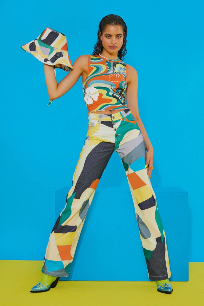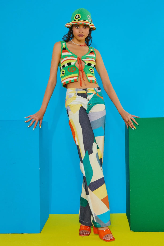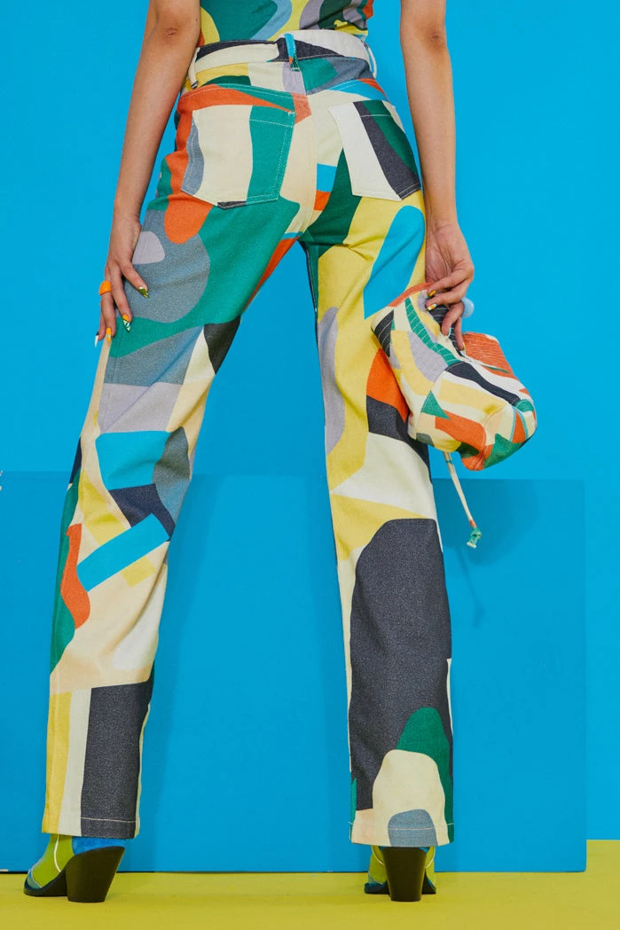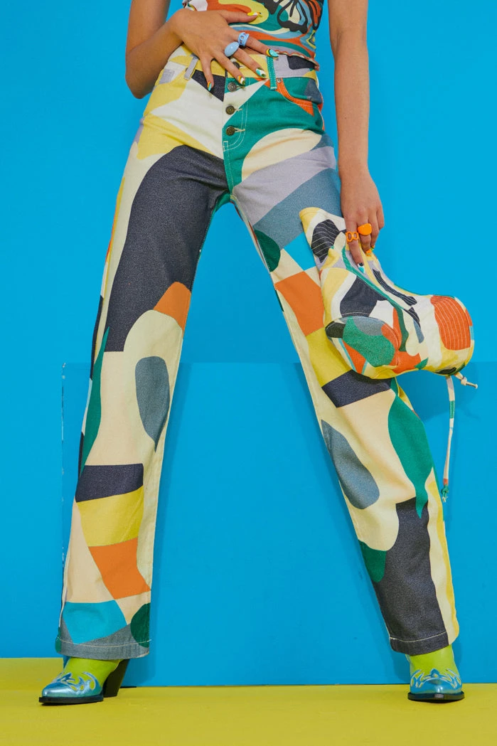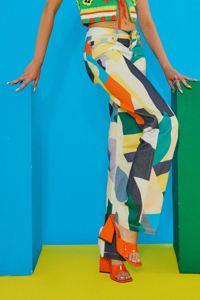 %text-1-start% Add some print to your wardrobe this season with our Abstract Art Print High Waist Boyfriend Fit Jeans!