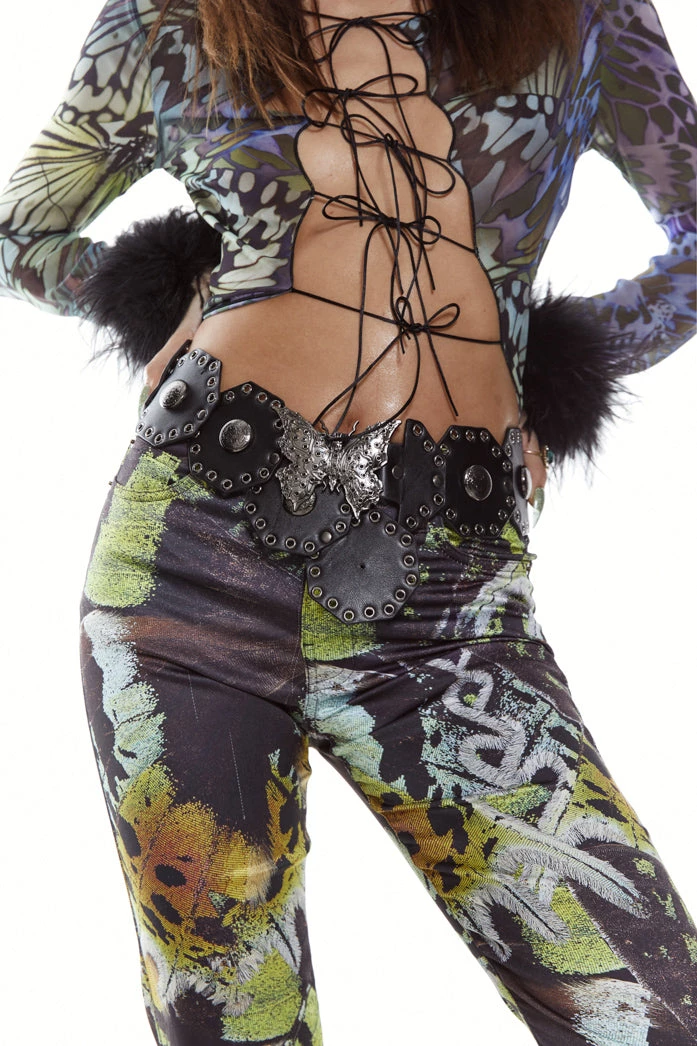 %text-1-start%Faux Leather Concho Belt With Metal TrimsÂ