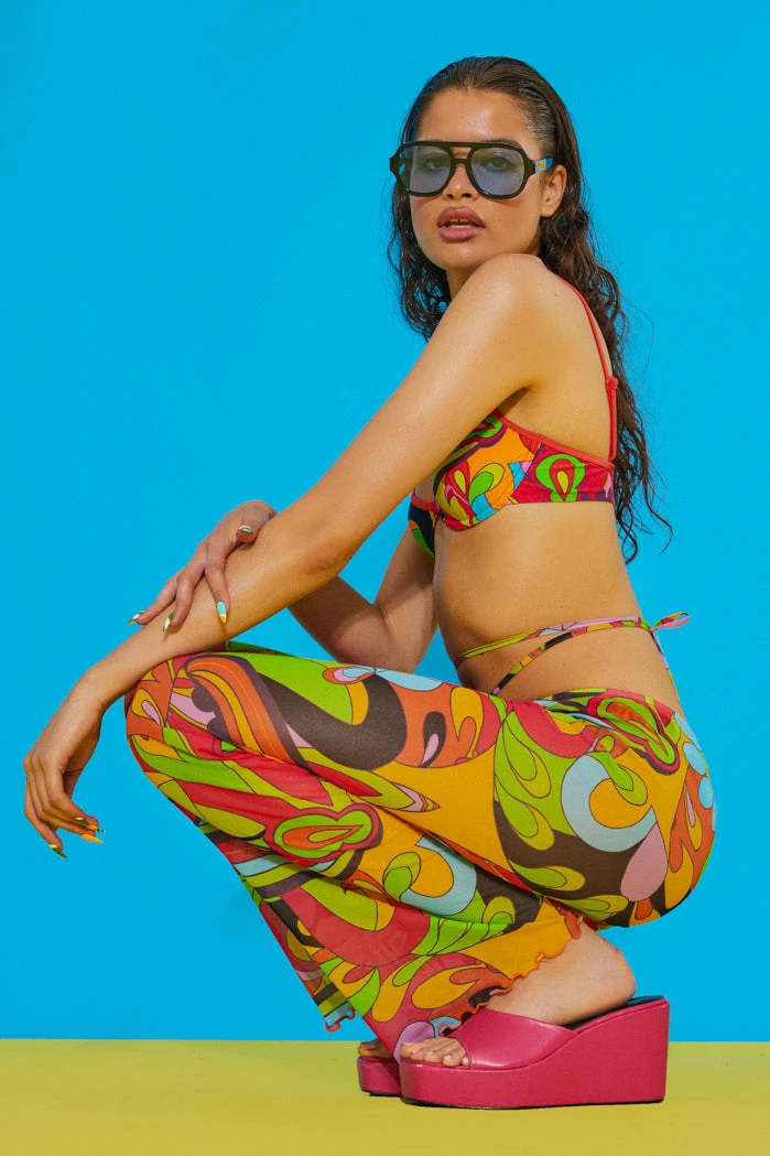 %text-1-start%Upgrade your swim wardrobe this season rocking our Geometric Summer Print Slight Flared Leg Beach Trousers, style with the matching bikini!