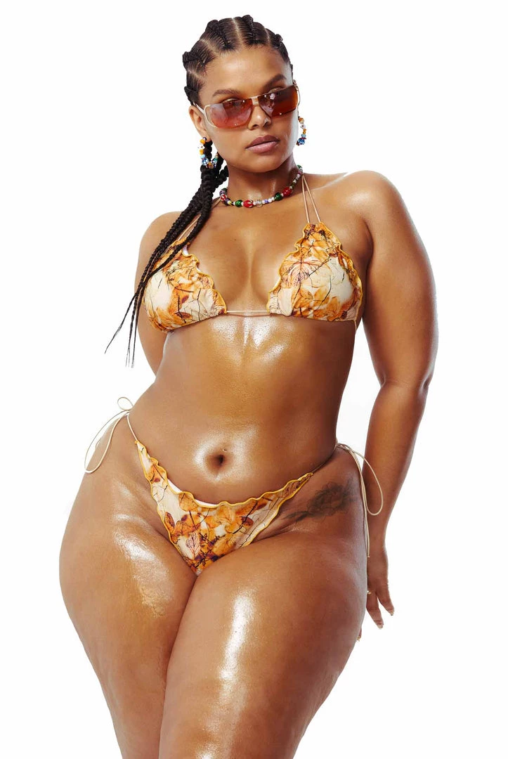 %text-1-start%Leaf Print Ruffle Edge Triangle Bikini Top