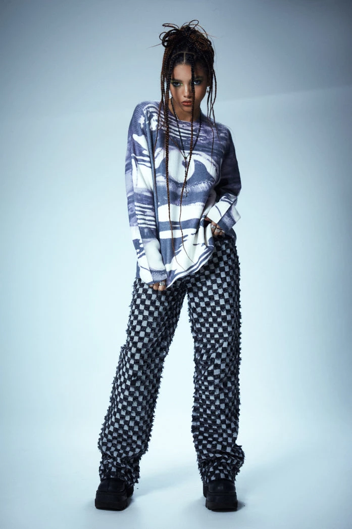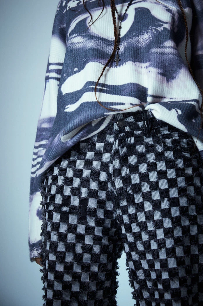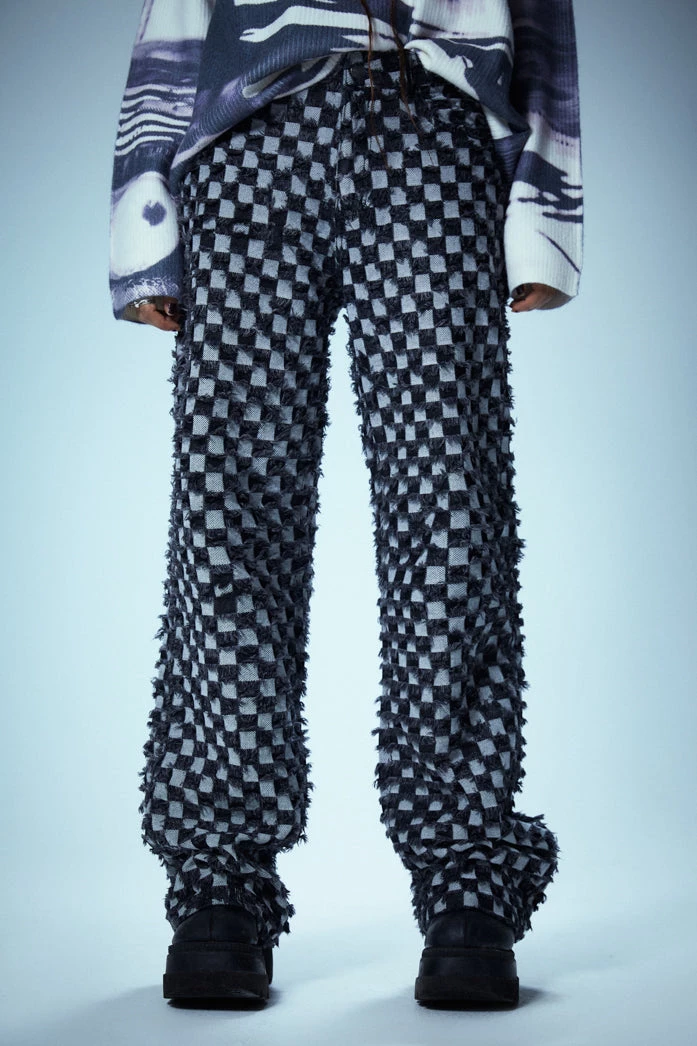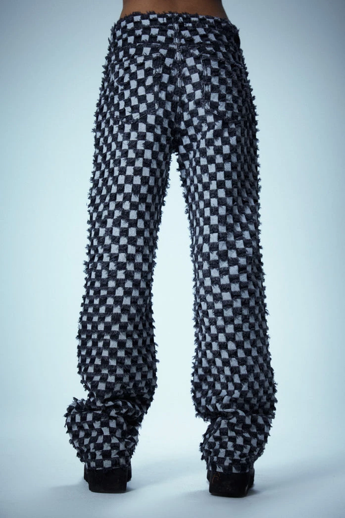 %text-1-start%Black & White Checkerboard Distressed Boyfriend Jeans