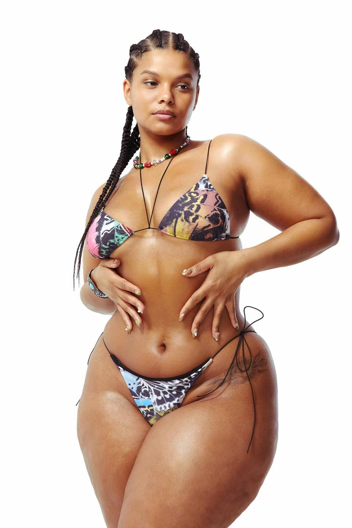 %text-1-start%Butterfly Wing Print Triangle Bikini Top with Shoulder Strap Detail