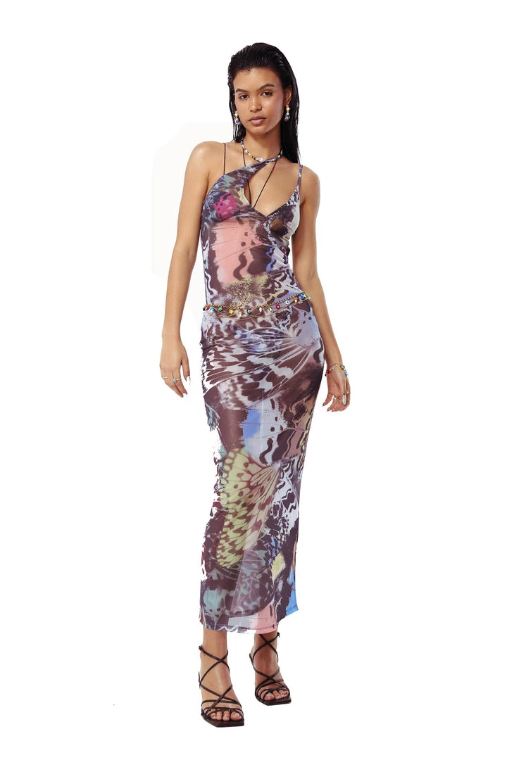 %text-1-start%Butterfly Print Mesh Asymmetric Maxi Beach DressÂ