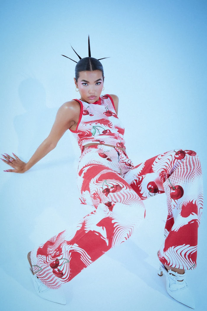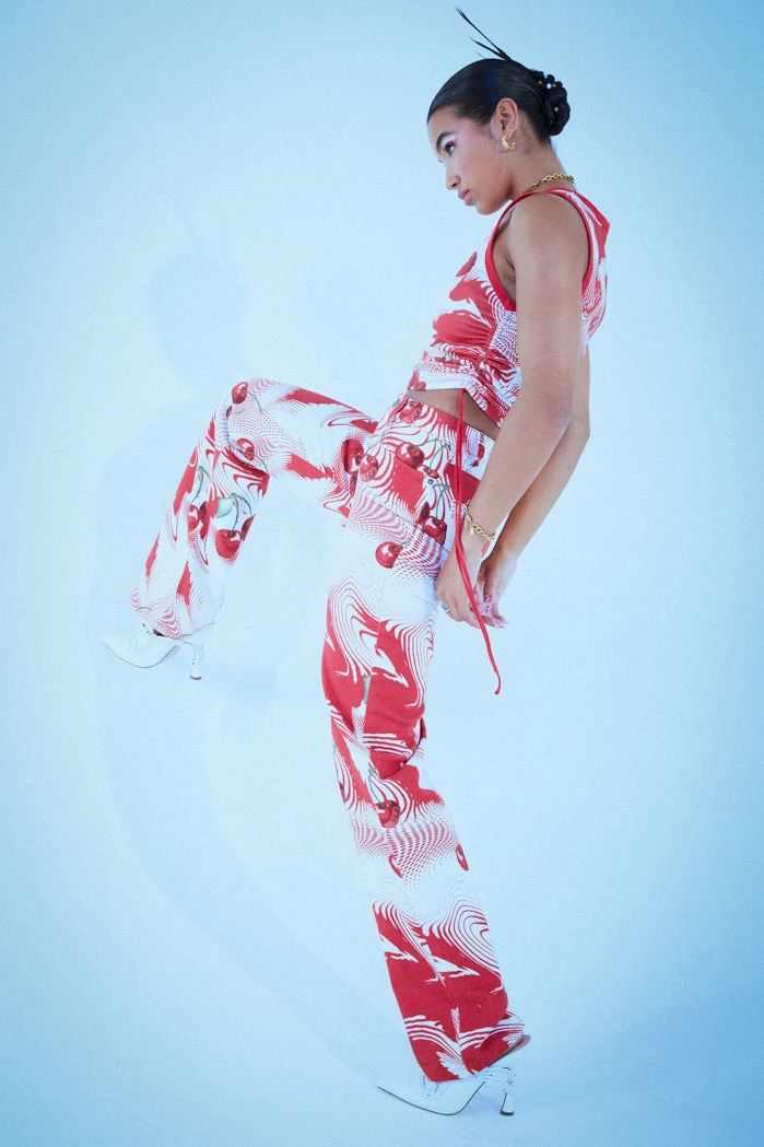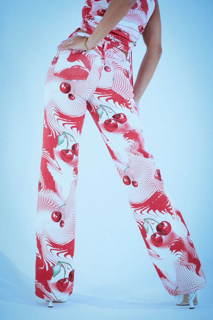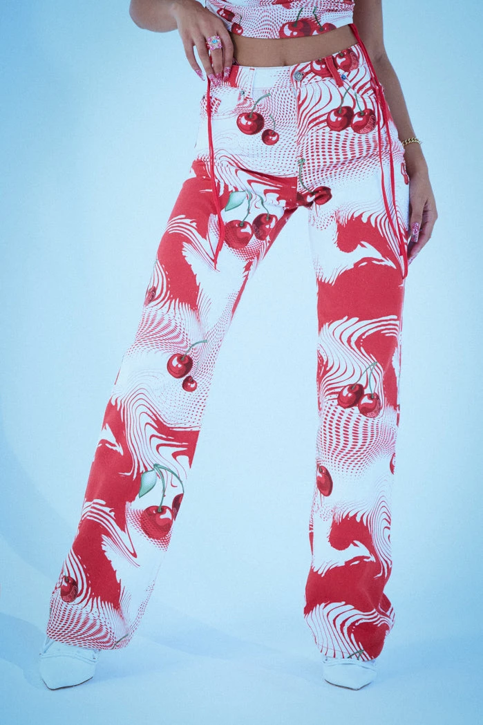%text-1-start%Put a cherry on top rocking our Cherry Swirl Print Slouchy Boyfriend Fit Jeans. Style with the matching top for the ultimate summer co-ord!