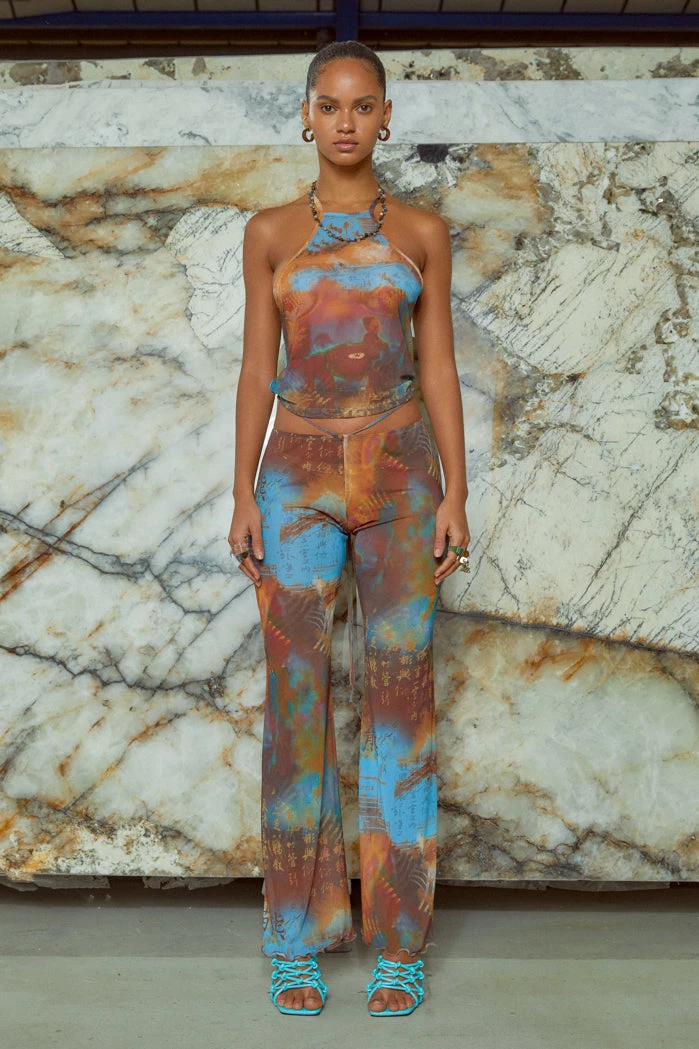 %text-1-start% Turn heads rocking our Heatmap Print Mesh Trousers with Extra Long Waist Binding Detail pair with the matching top for a kick-ass co-ord!