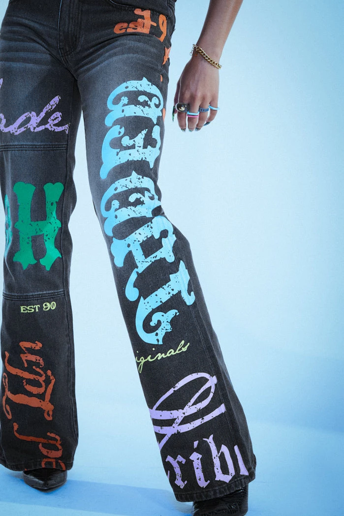 %text-1-start% Your favourite trend is back, rock our Honey Bum Print Low Rise Jeans!