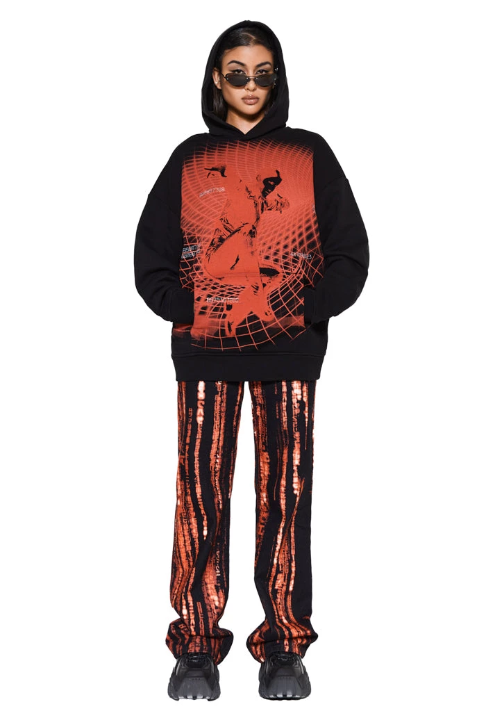 The collection encapsulates modern shapes and silhouettes, mixed with eclectic prints from the Matrix trilogy. %text-2-end%