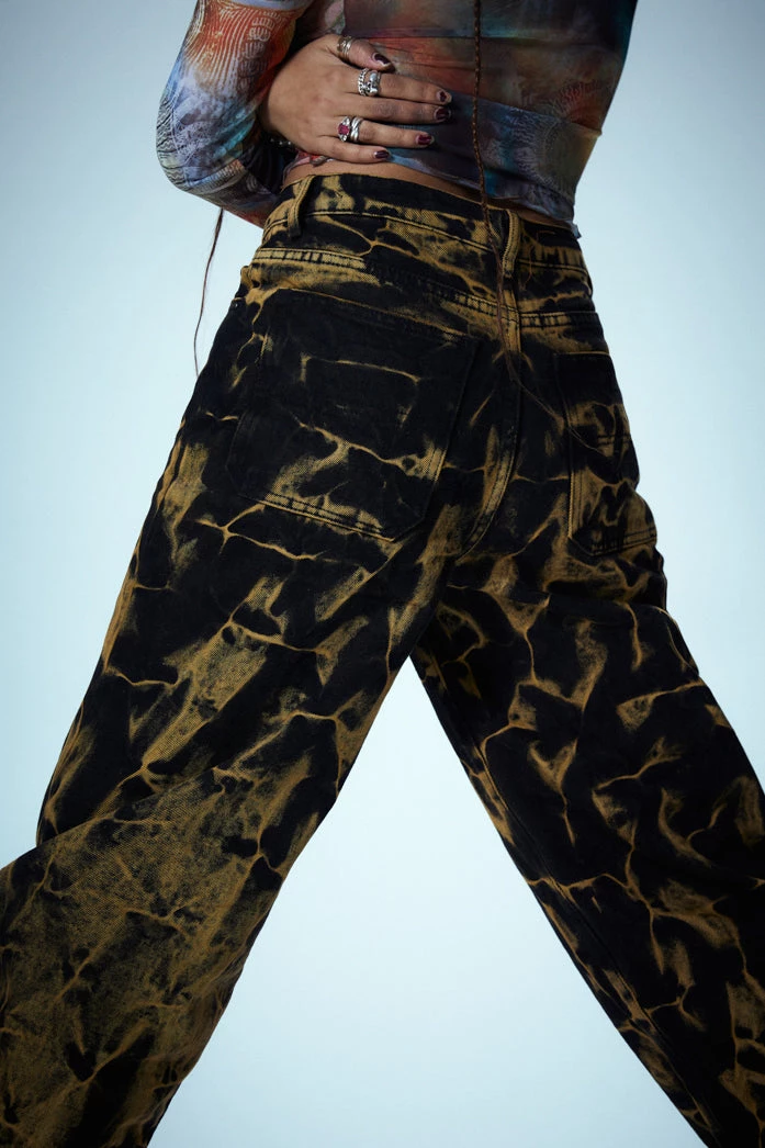 %text-1-start%Washed Black & Burnt Orange Ripple Tie Dye Effect JeansÂ