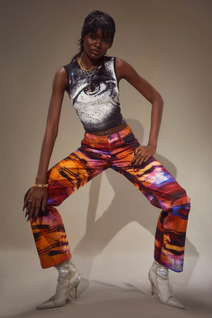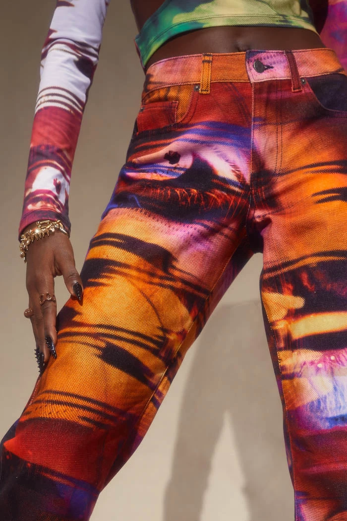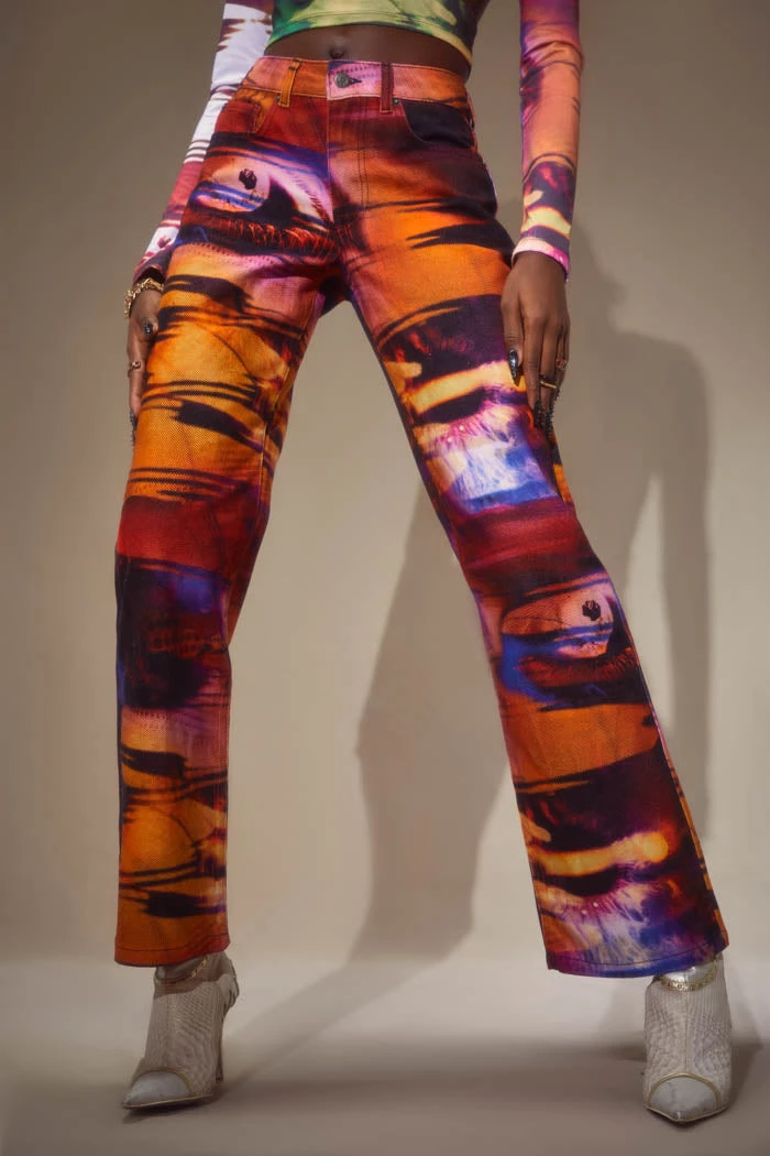 %text-1-start%Abstract Eye Print Boyfriend Fit Denim Jeans