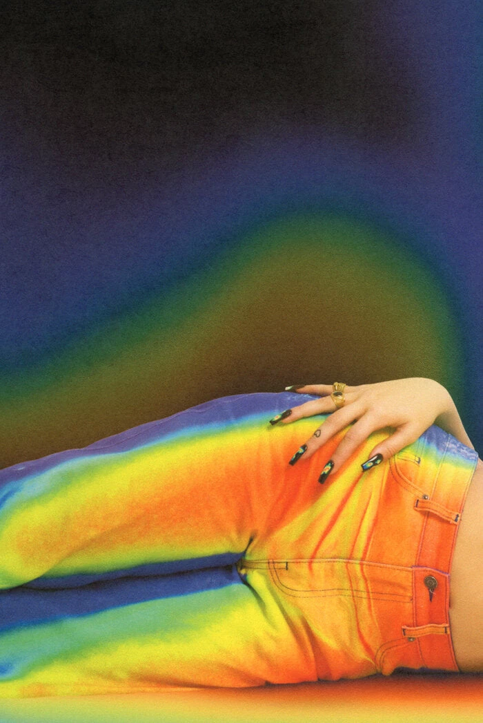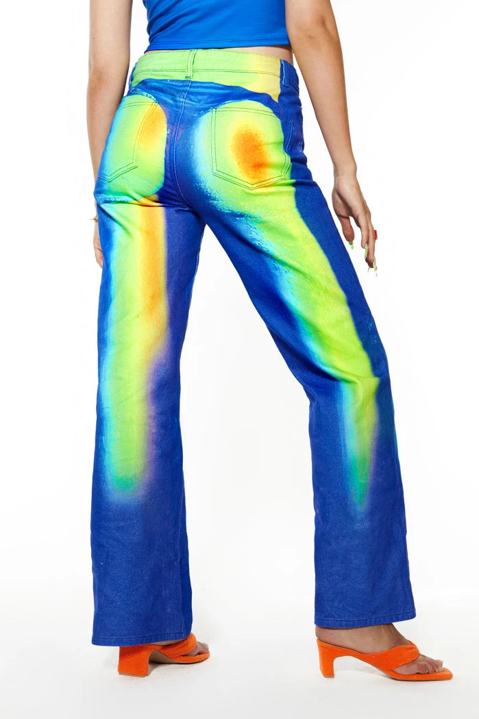 Inspired by the virtual world, the prints in the collection translate into all thing’s science lab. The drop includes thermal heatmap jeans and chemical inspired prints on some of Jaded’s iconic pieces. The pieces we have curated together feels authentic to Sydney’s style and her love for bright vintage prints.