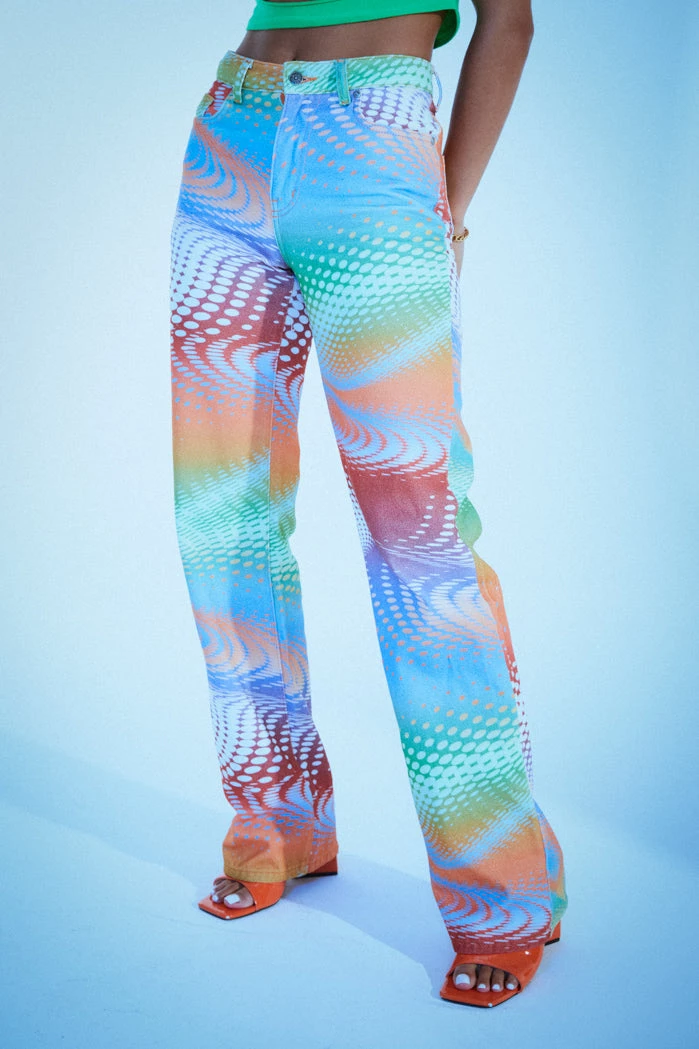 %text-1-start%Add some print to your wardrobe this season rocking our Petite Y2K Warped Dot Print Slouchy Boyfriend Fit Jeans!