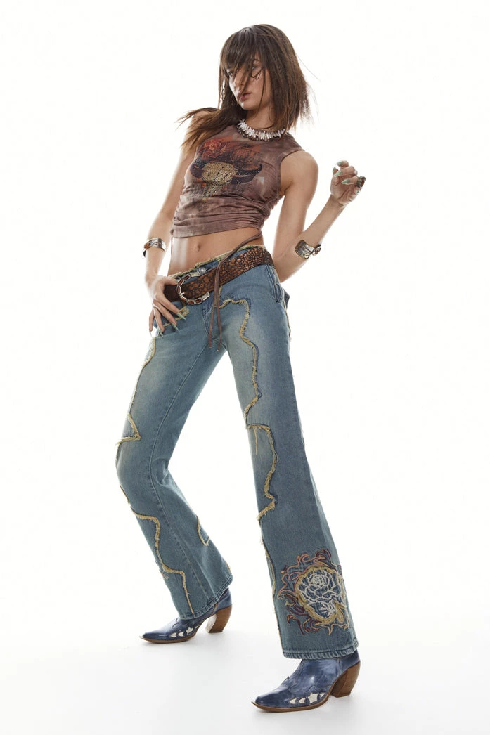 %text-1-start%Bull Print with Rhinestone Detail Ruched Side Tank Top