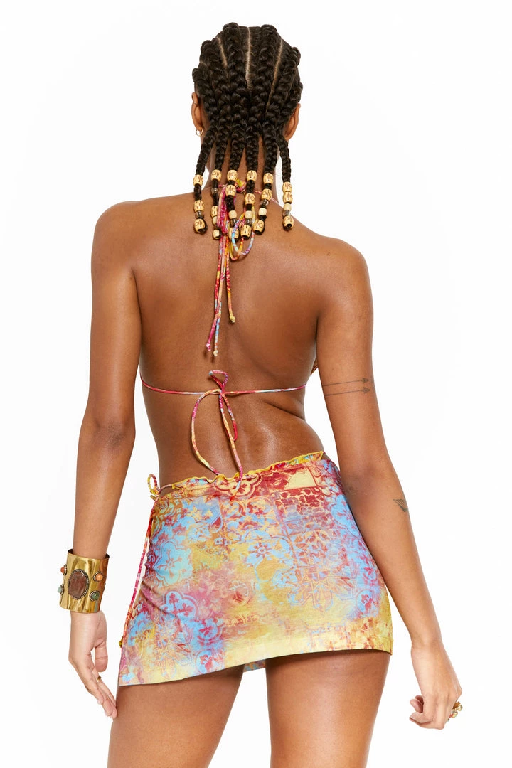 %text-1-start%Mosaic Baroque Print Mesh Mini Skirt With Side SplitÂ