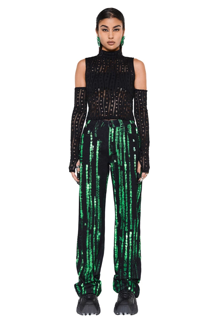 The collection encapsulates modern shapes and silhouettes, mixed with eclectic prints from the Matrix trilogy. %text-2-end%