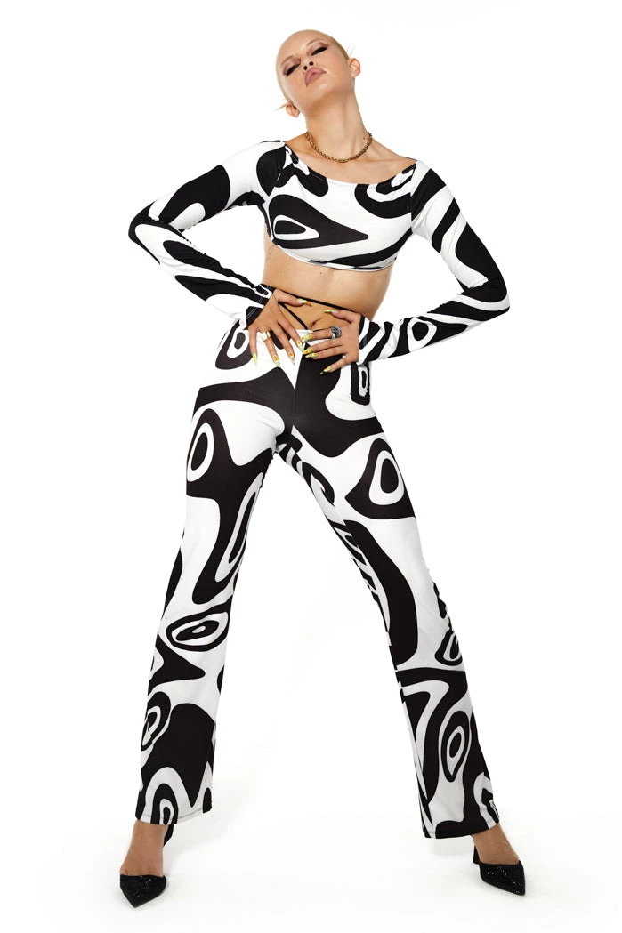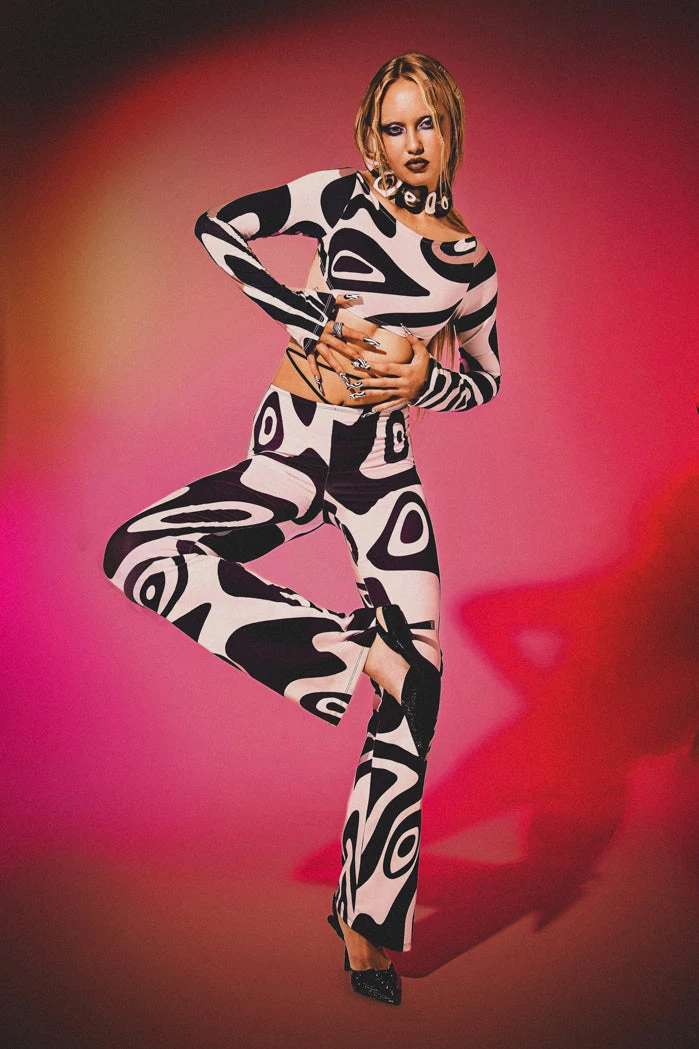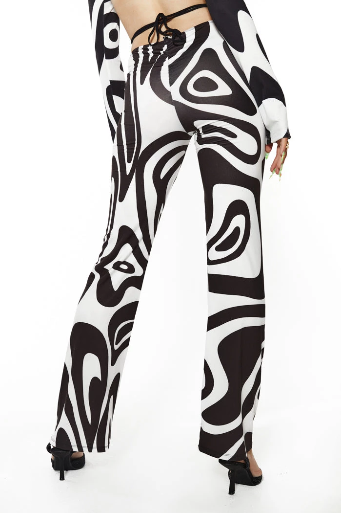 %text-1-start%Monochrome Warp Print High Waist Bootcut Trousers