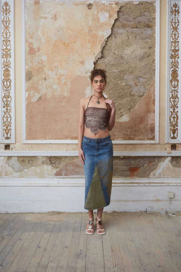 %text-1-start%Floral Mesh Embroidered Halter Neck Corset Top