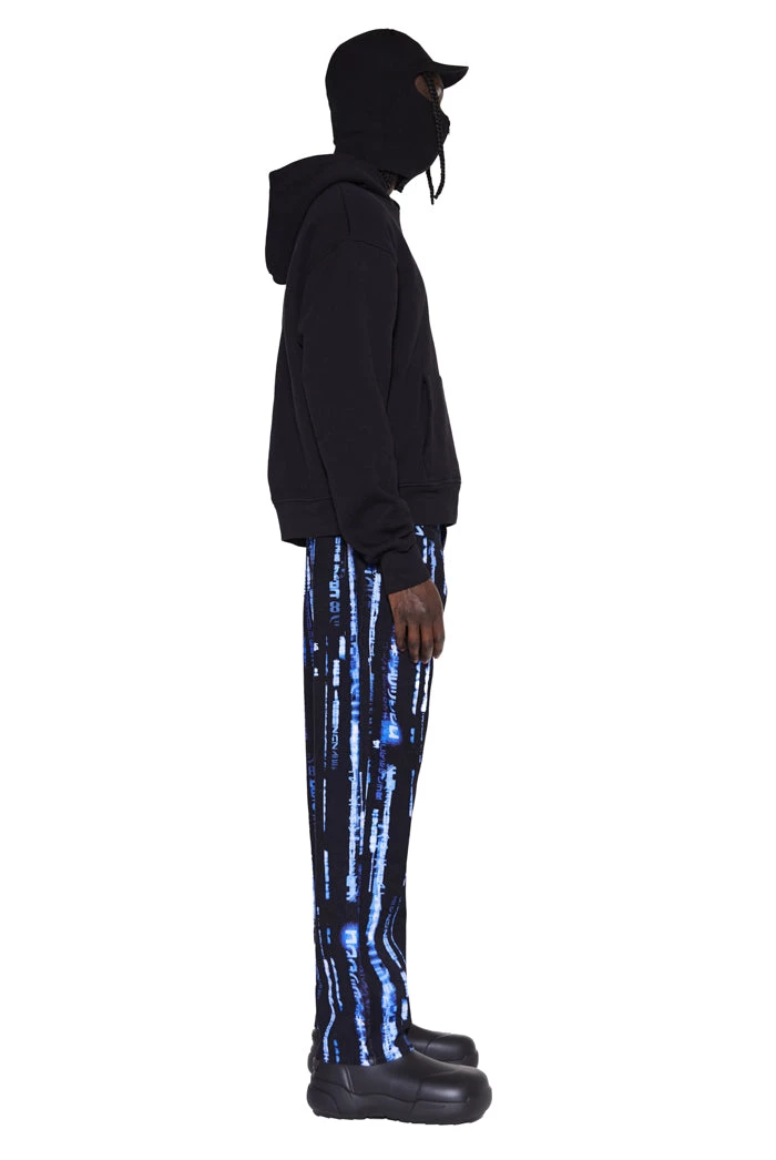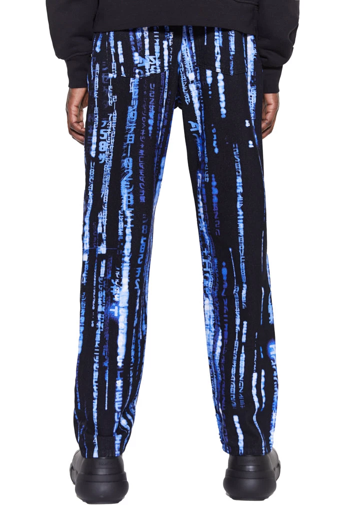 %text-1-start%Blue Matrix Code Print Straight Leg Fit Jeans