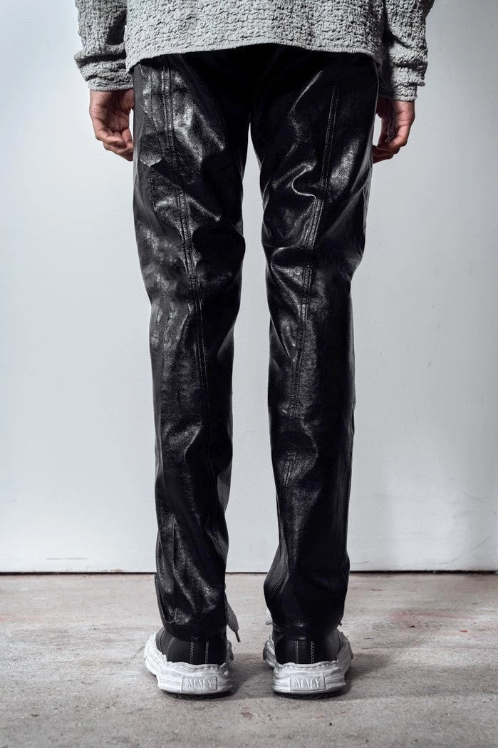 %text-1-start%Black Panelled Cracked Vegan Leather Jeans