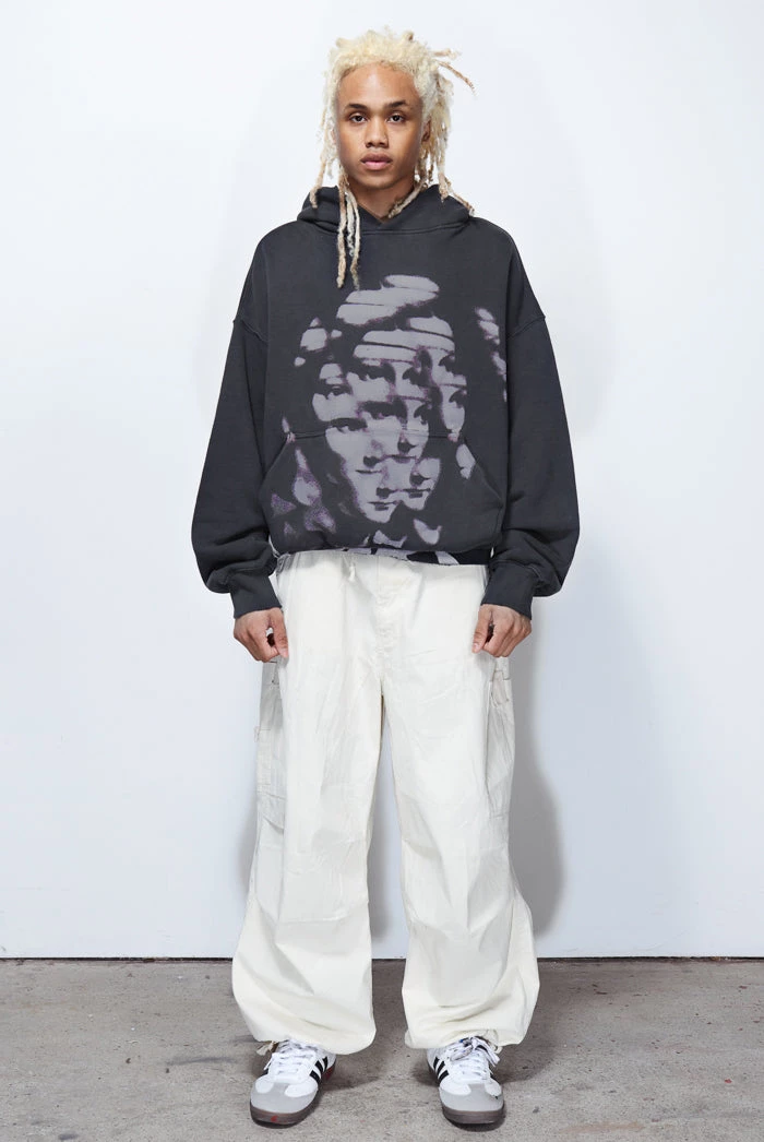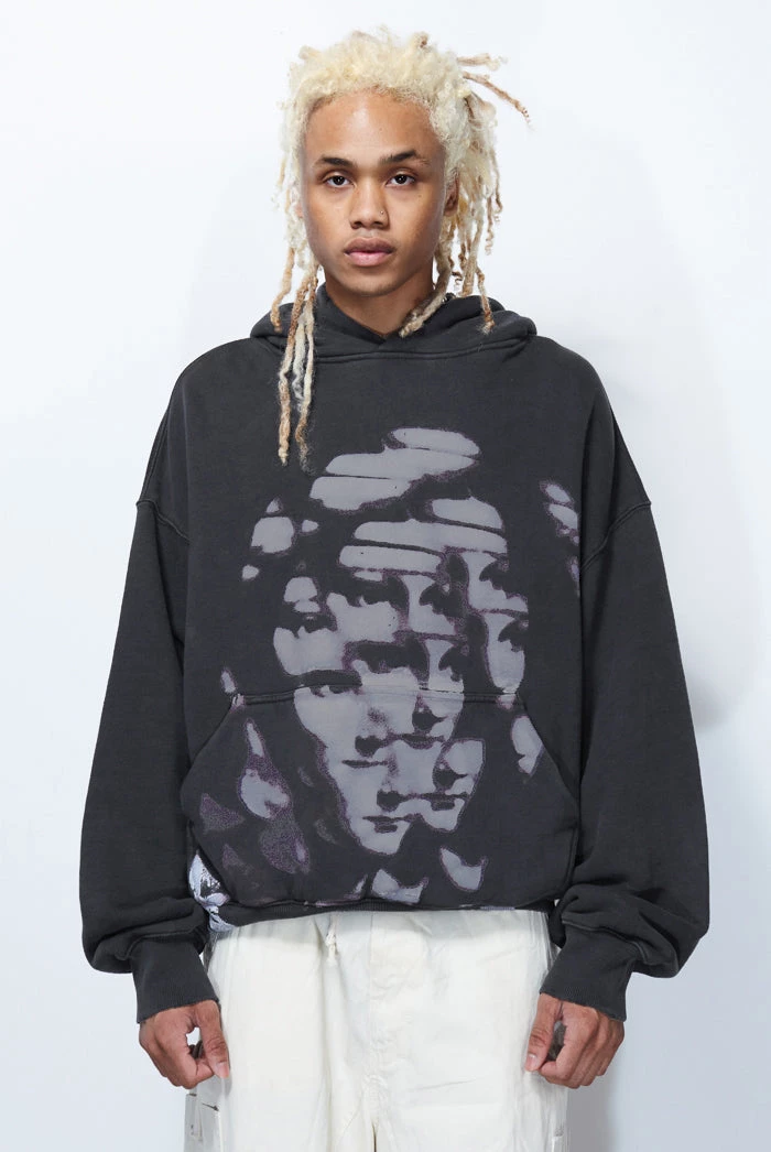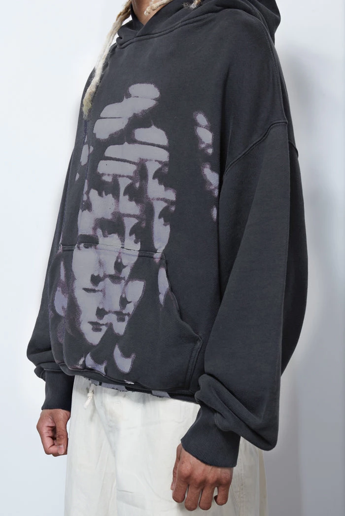%text-1-start%Kaleidoscope Faces Oversized Hoodie with Heavy Wash