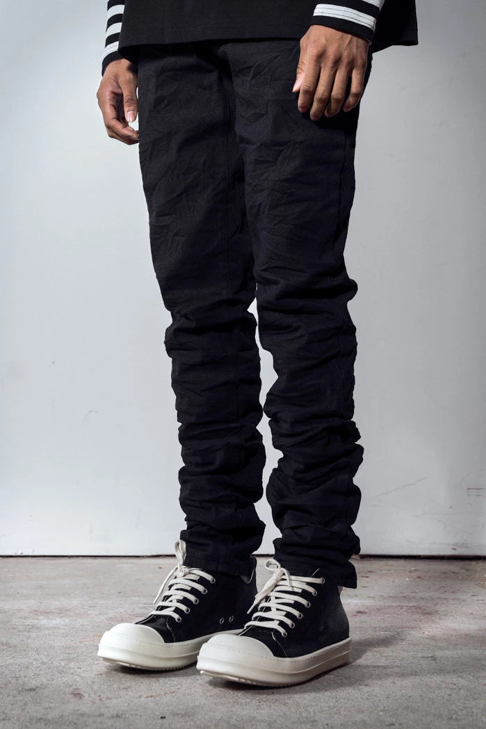 %text-1-start%Black Coated Stacked Straight Leg Jeans