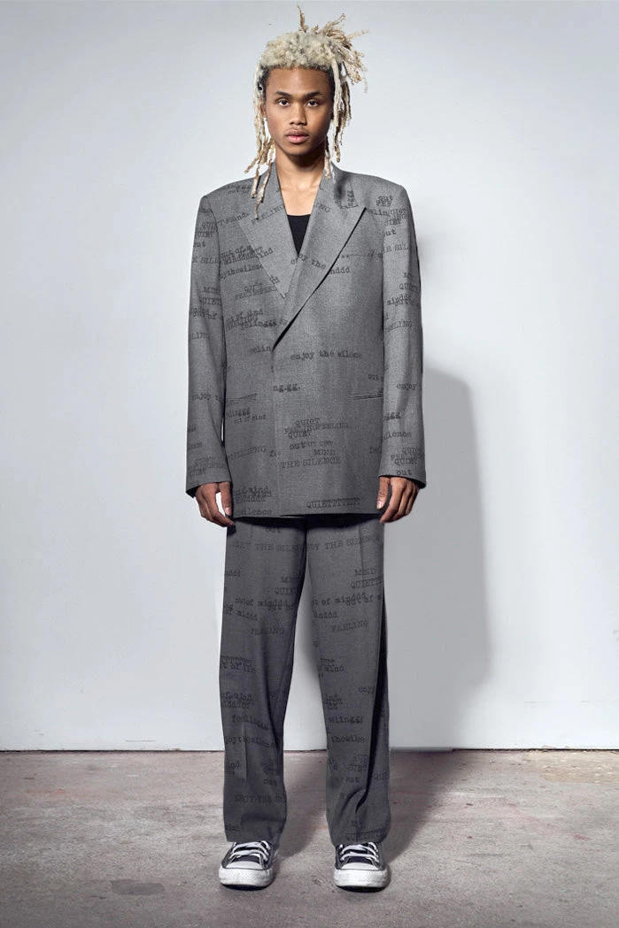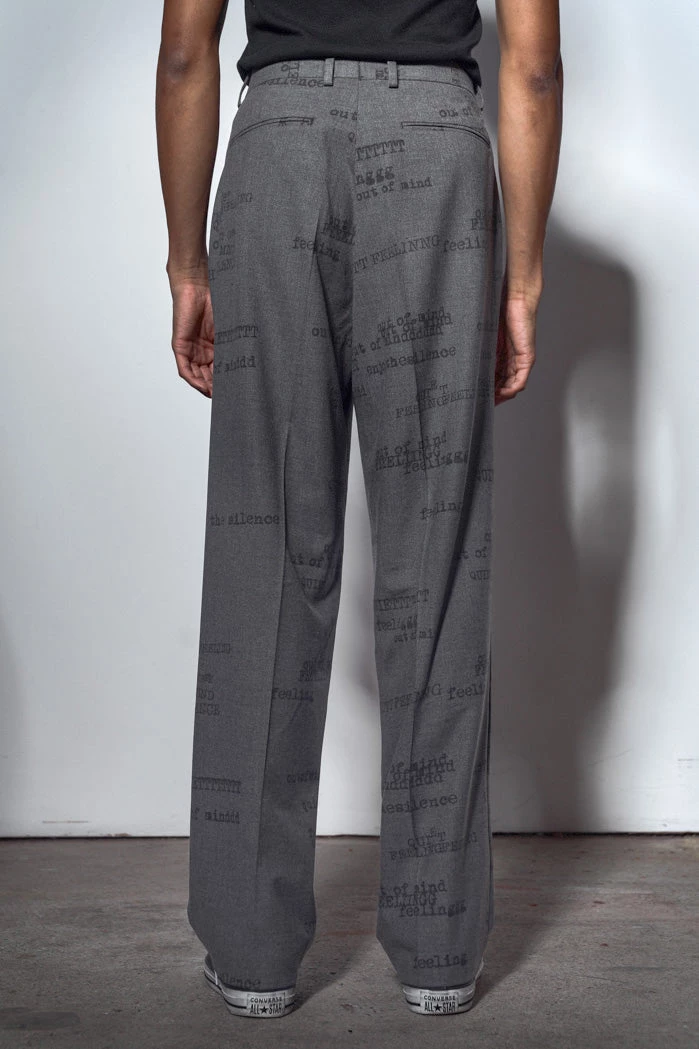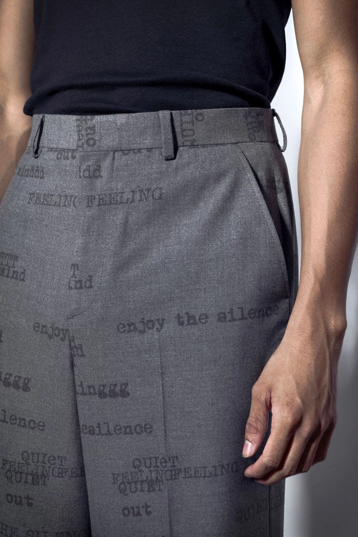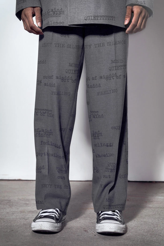 %text-1-start%Grey Printed Typewriter Loose Fit Trousers