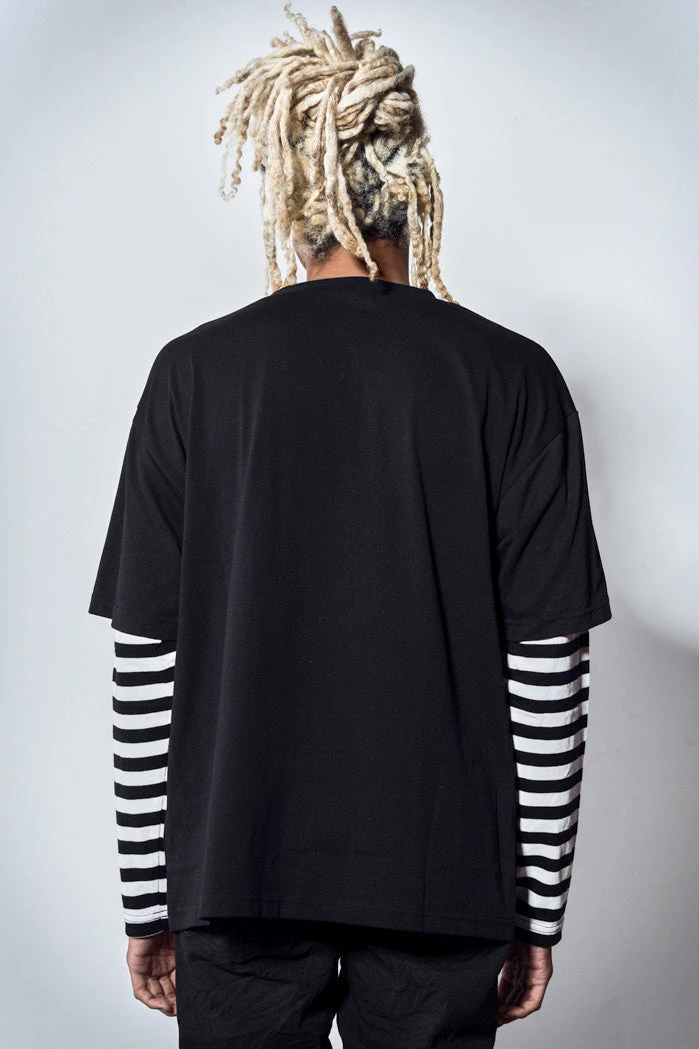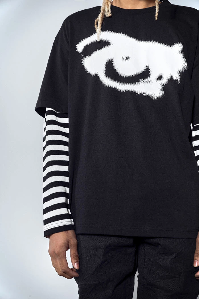 %text-1-start%Blurred Eye Double Layer Mock Long Sleeve T-Shirt