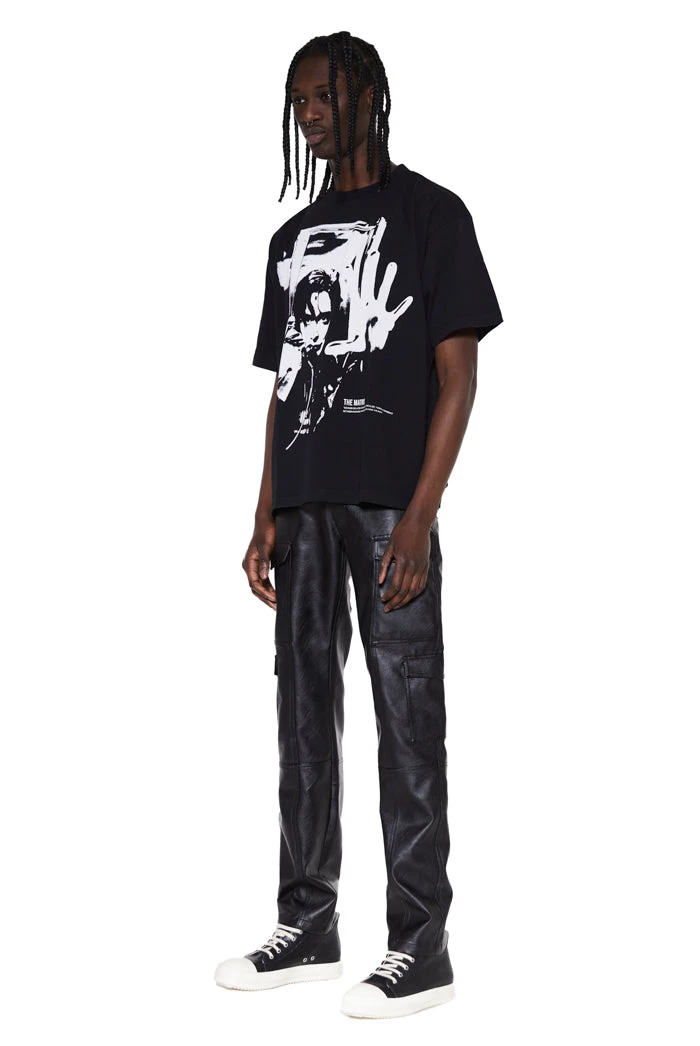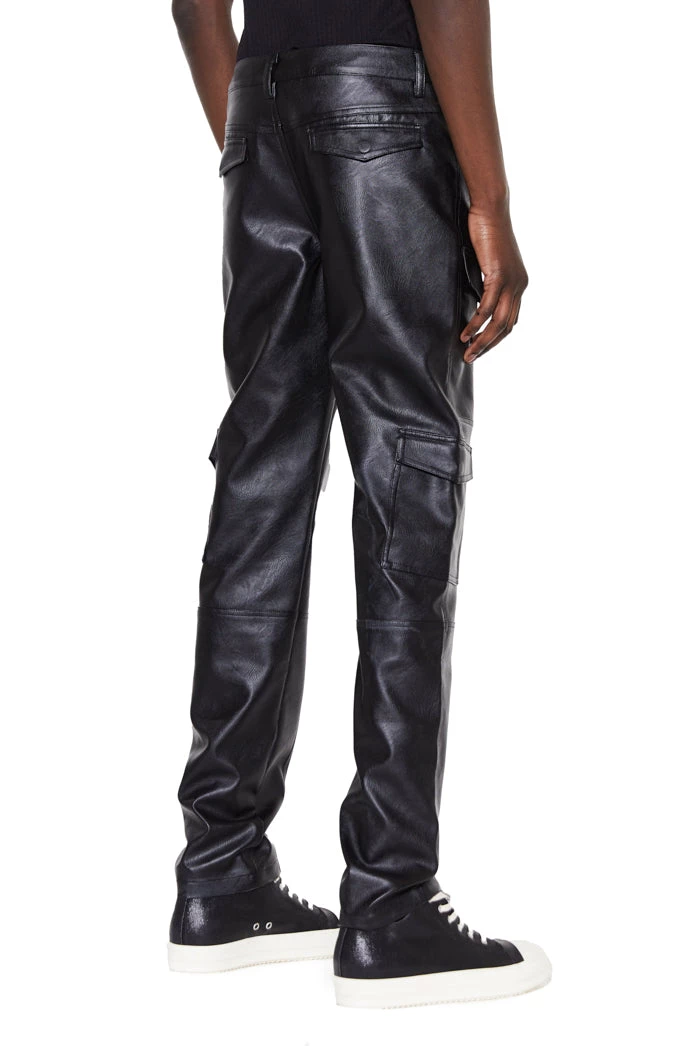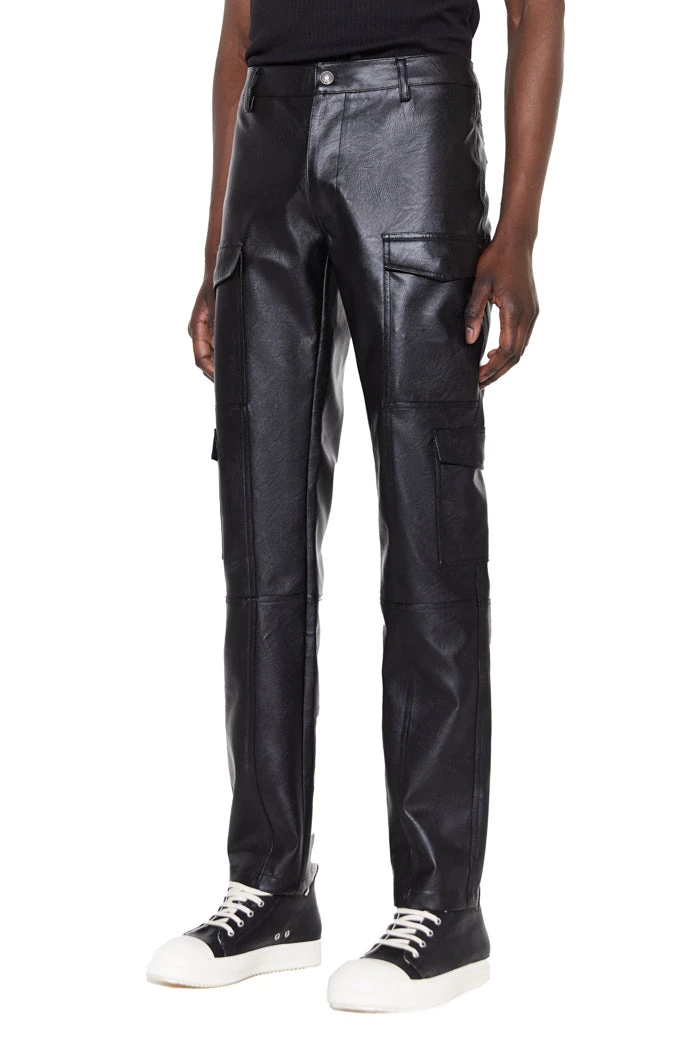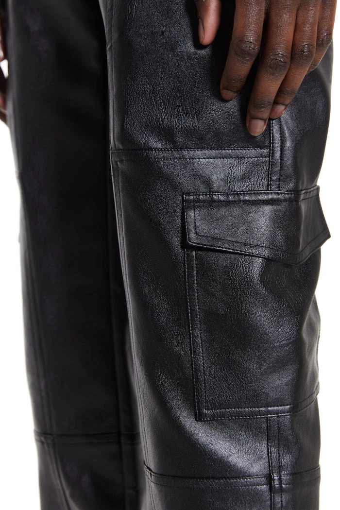 %text-1-start%Black Cargo Vegan Leather Trousers
