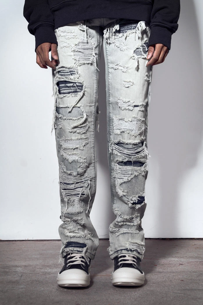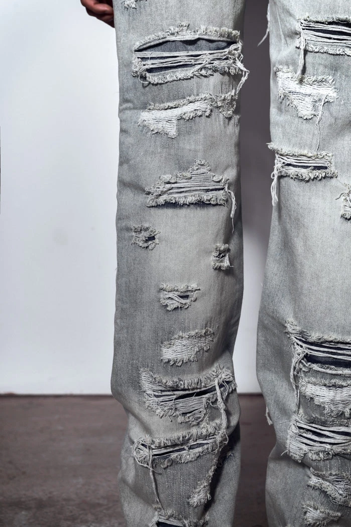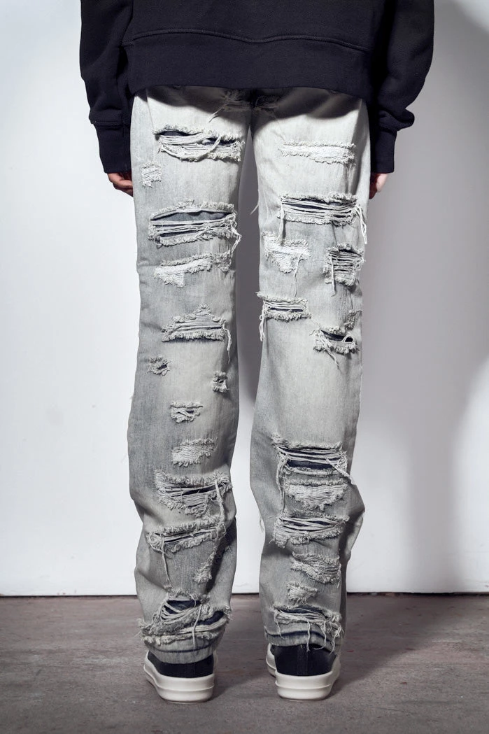 %text-1-start%Extreme Ripped Straight Leg Blue Jeans