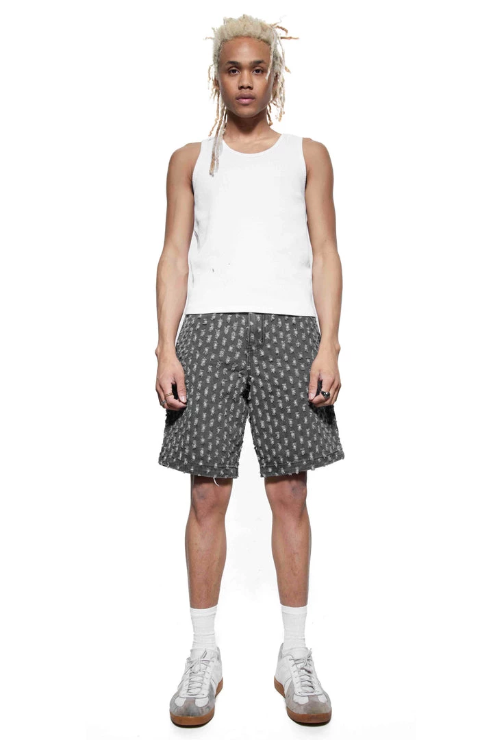 %text-1-start%Washed Black Distressed Denim Skate Shorts